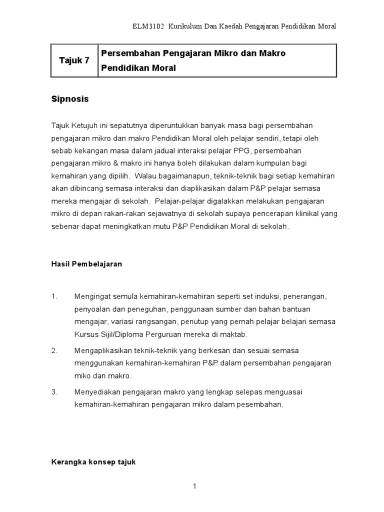 14 Elm 3102 Tajuk 7 Persembahan Pengajaran Mikro Dan Makro Pendidikan Moral Pdf