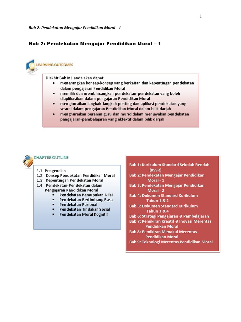 Perwatakan yang positif harus terdiri daripada tiga dimensi moral ini iaitu pemikiran moral perasaan moral dan tingkah laku moral. Di dalam konteks pendidikan konsep pendekatan bermakna cara mendekati sesuatu misalnya objektif pelajaran yang ditentukan untuk pengajaran dan pembelajaran maka pendekatan adalah merujuk kepada cara bagaimana sesuatu mata pelajaran yang diajarkan untuk mencapai objektifnya. BAB 3 PENGAJARAN DAN PEMBELAJARAN.